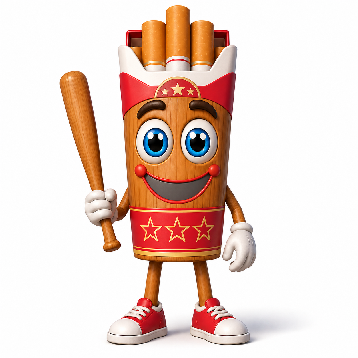 tung tung sahur fused into a sanxing pack. wooden body. red stripes. one bat, three stars.